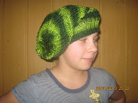 Sweterek nie ma żadnych wzorków bo Adaś ich nie lubi, za to czapka i szalik to kombinacja niby-warkocza z ażurem - moim zdaniem fajnie wygląda choć mina modelki mało zachwycona. Modelka tuż po grypie wyrwana sprzed telewizora nie wyraża zachwytu. Teraz myślę nad spruciem swetra zeszłorocznej produkcji typu"pokrowiec na autobus" i przerobienia go na poncho ewentualnie chustę taką wielką - szukam wzoru i już mi się coś rysuje ala jak tu spruć ukochany sweterek, który grzeje kolana a rękawy zastępują rękawiczki? Może najpierw zrobię mitenki do brązowego zestawu lub szal do czapki smerfetki zielonej...