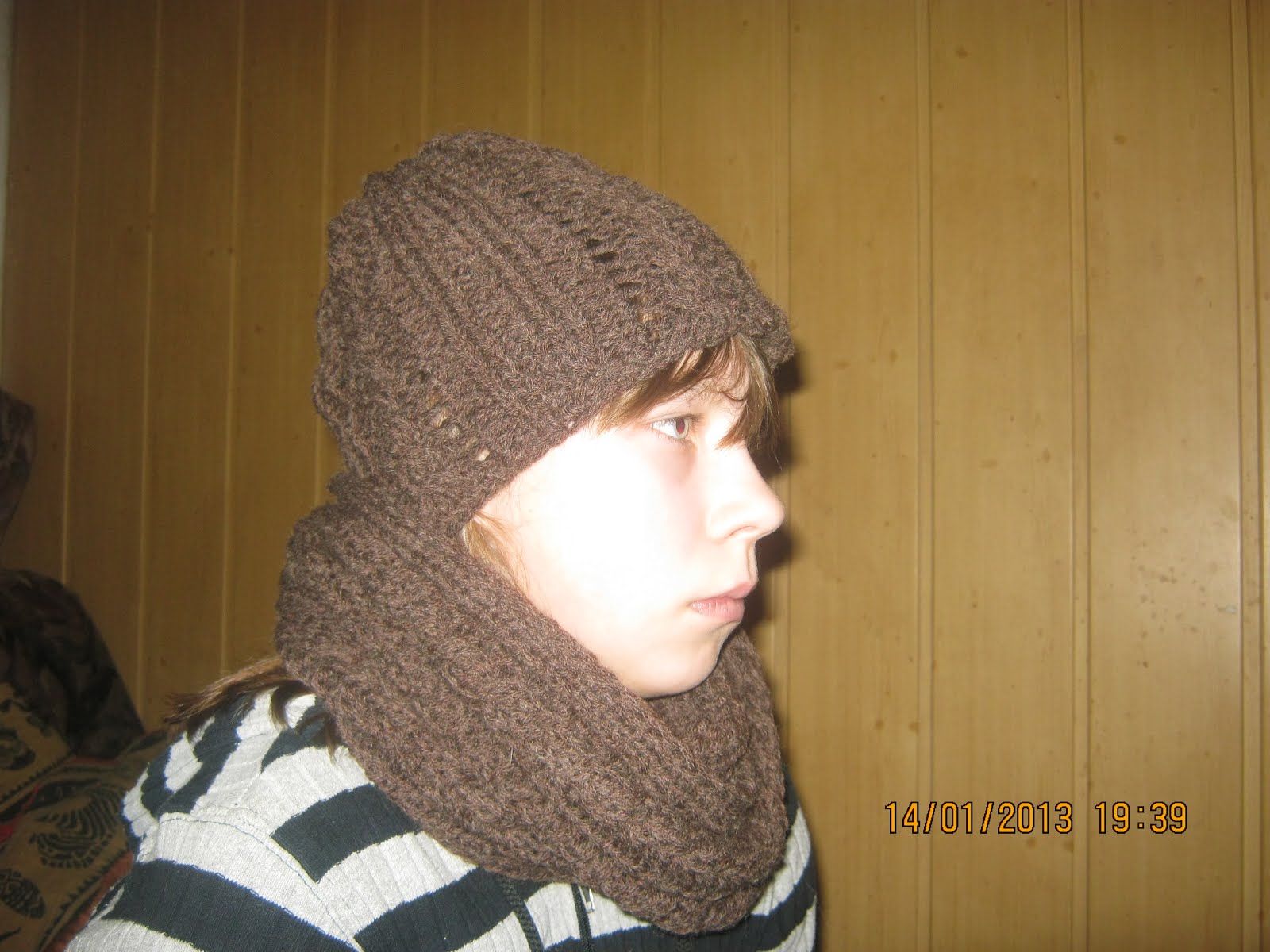 Tak wygląda czapka i szalik zamknięty który zrobiłam w ramach odpoczynku po niezwykle nudnym w robieniu sweterka męskiego.