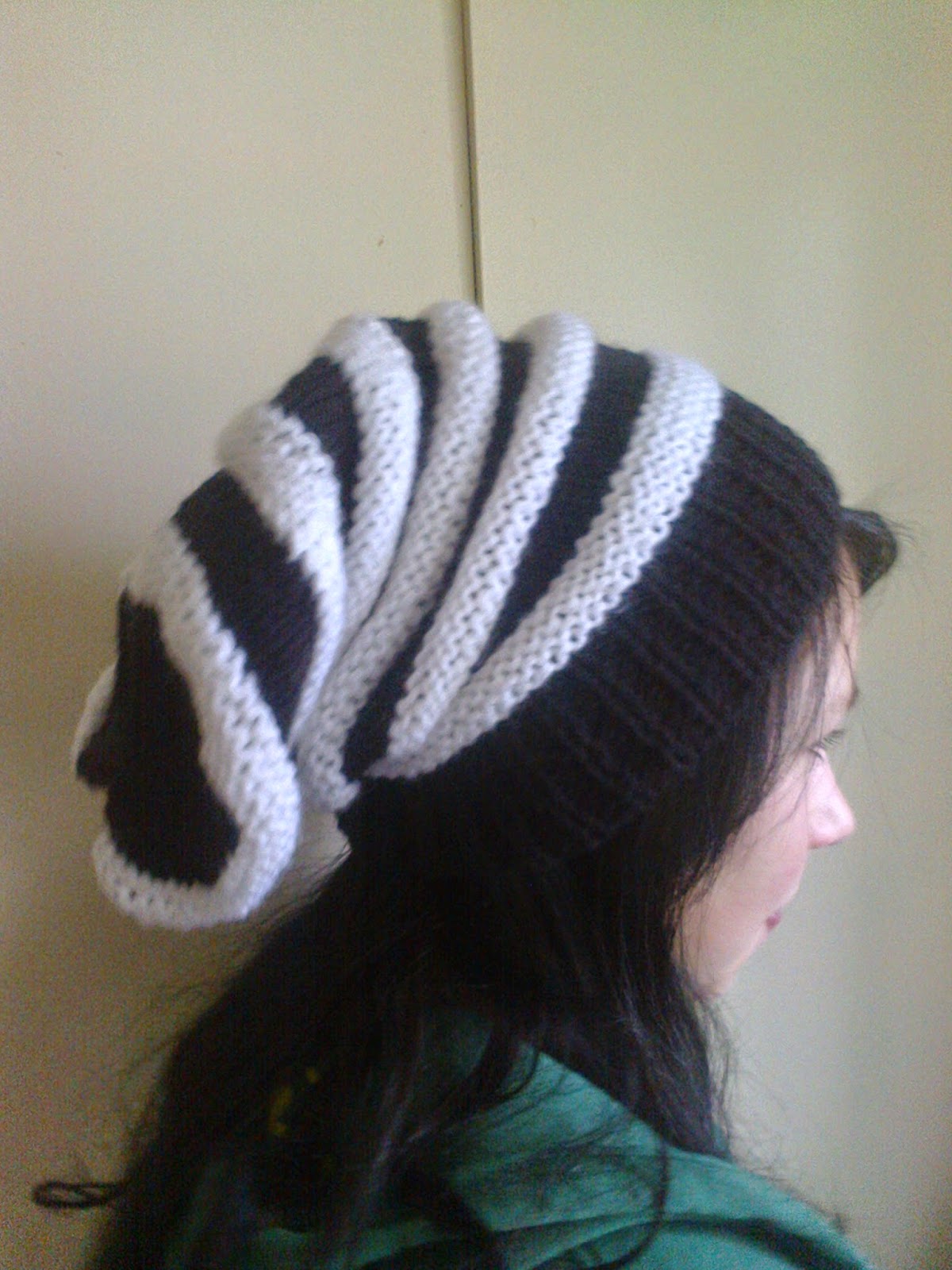 Po dwóch pasiastych sweterkach dla Lucynki (ten kolorowy zrobiłam na przekór jesiennym szarugom) przyszedł czas na czapkę dla starszej dziewczynki - smerfową zebrę.