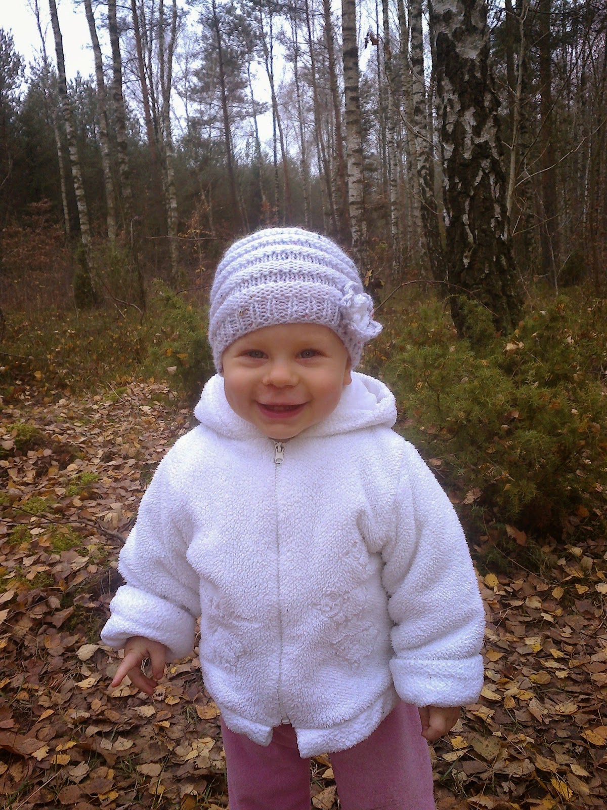 Cieplutka i milutka, warkocz trzyma czapkę na główce i ogrzewa czółko. Mam wrażenie, że jest to jeden z lepszych modeli czapeczki dla malucha.